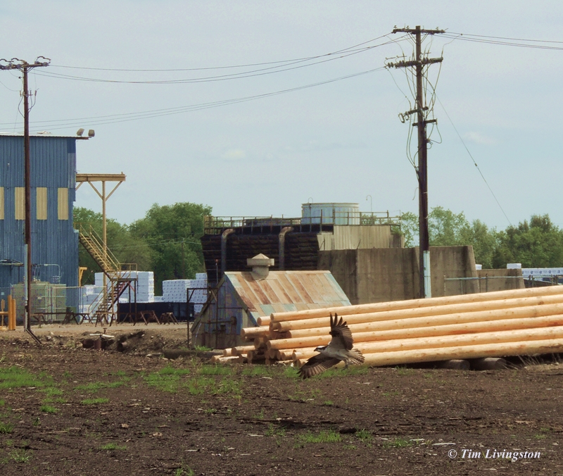 I saw an osprey do the strangest thing the other day. I was driving from the log yard to the pole yard and I saw one of the osprey go into an aggressive dive. Located between the two yards is a canal. I naturally assumed that the osprey was going after a fish in the canal. I drove closer and pulled over to get some shots of the action.