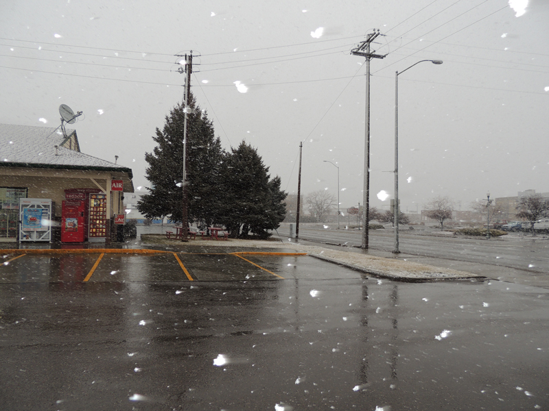The snow started flying on our way home.