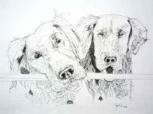 I’m reblogging a post today from our blogger friend Divya. Her blog is http://divyaadusumilli.wordpress.com and I encourage you to go visit. It is a wonderful blog. Last week she contacted me and my wife, Mary, http://thebackdoorartist.com/ about drawing a picture from a photo I took of two of our golden retrievers. This is her post of our dogs. Thank you Divya, we love the picture. What a beautiful gift you have given us. Blaze and Hunter were the dogs that appeared in the original post, https://theforesterartist.com/2012/08/25/blaze/.