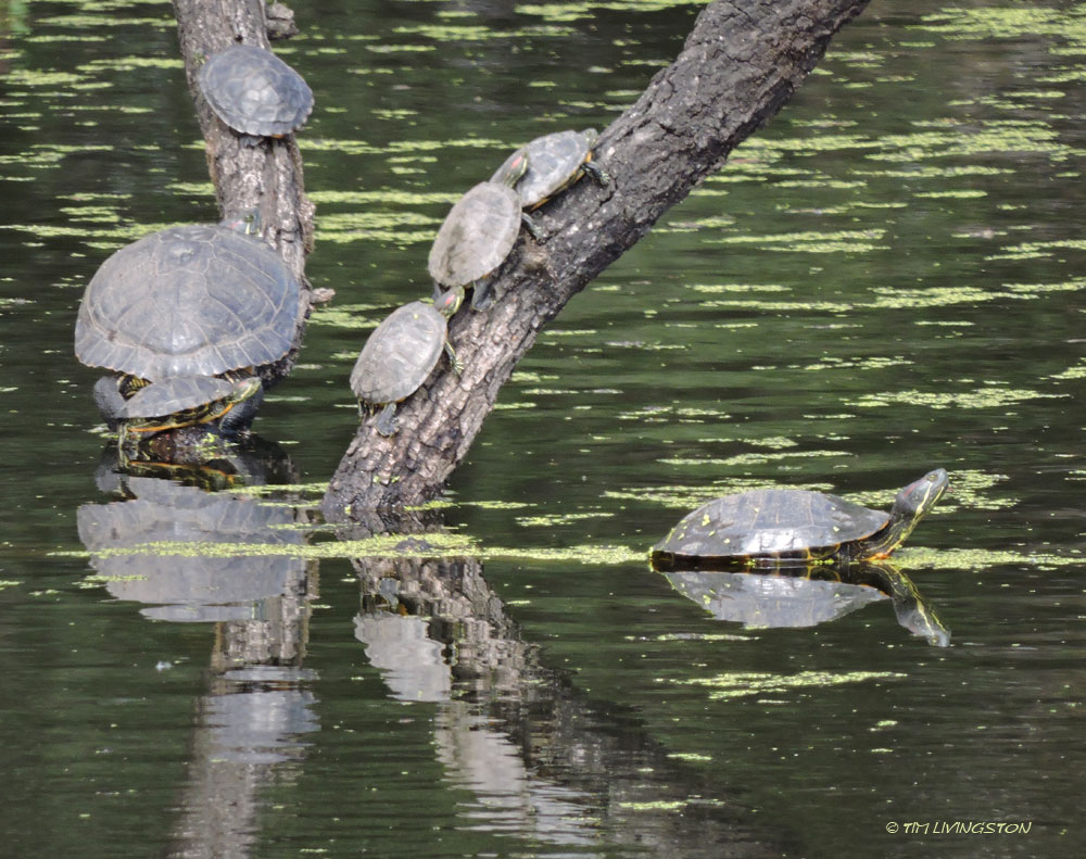 Who knew turtles can climb!?! By the way, the one on top is named Yertle.